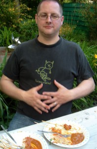 Danach spießt man das ganze und erwärmt die Marinade in einem Topf. Vorsicht, es brennt unsagbar schnell an. Dazu noch was Grünes und einen Glasnudelsalat und man hat wenig Arbeit und glückliche Gesichter um sich. Und selbst den Männern fällt kaum auf, daß es kein „richtiges“ Fleisch gab.