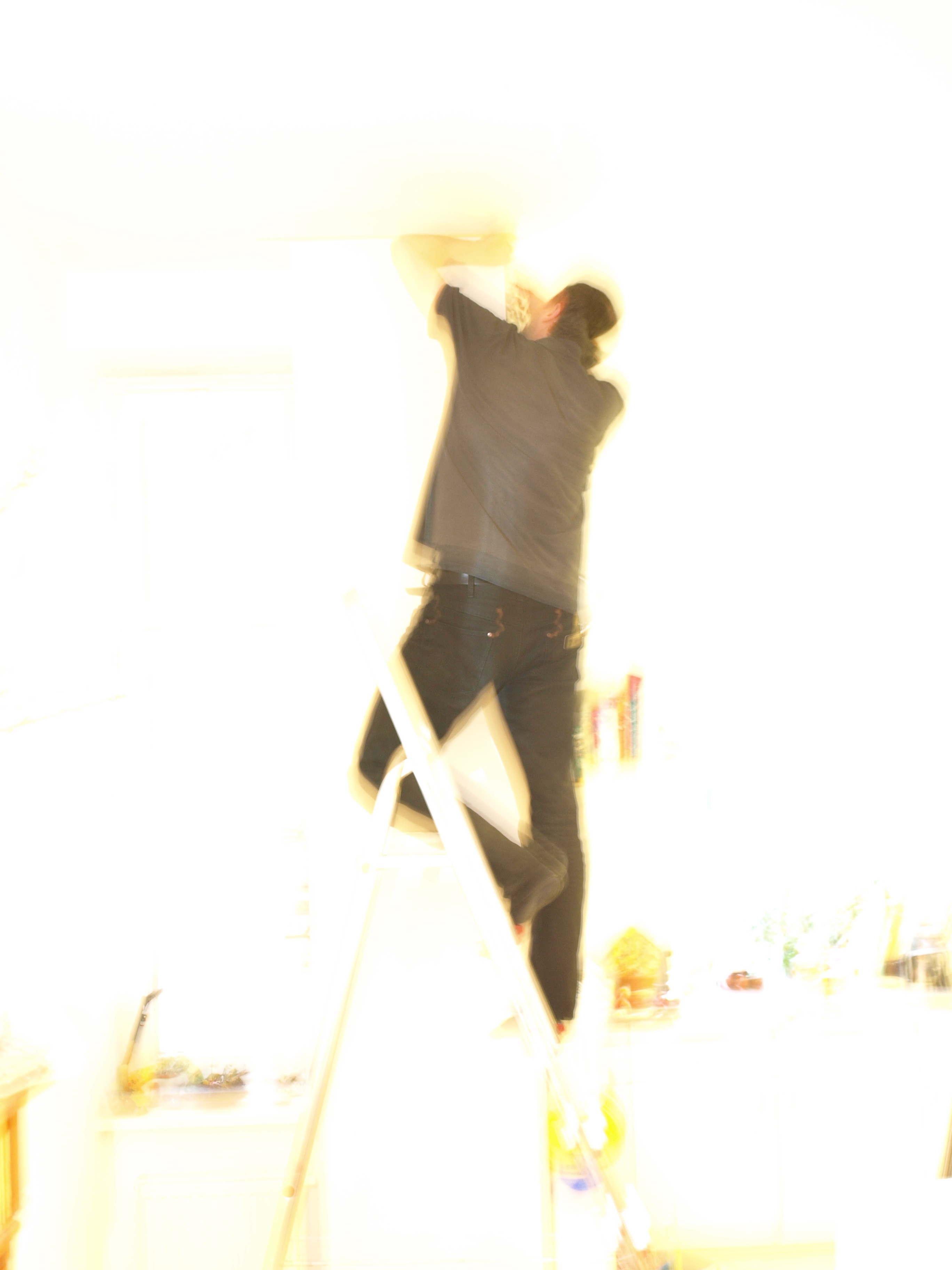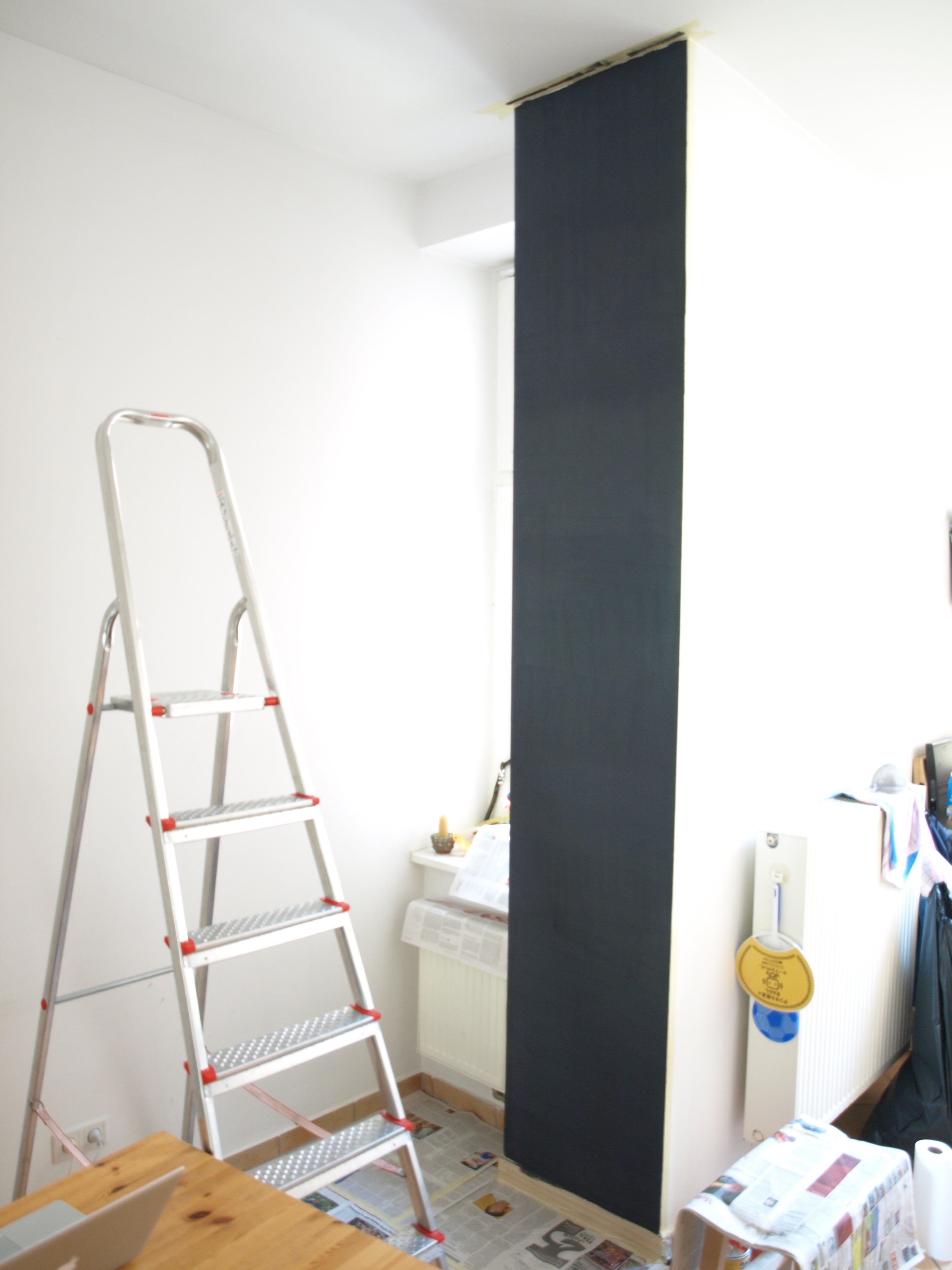 Schon seit ein paar Jahren trage ich die Idee mit mir herum, irgendeine Fläche in der Wohnung mit Tafellack zu bearbeiten. Statt Whiteboard. Kreide statt Filzstift. Überall, wo ich das mal gesehen hatte, fand ich das obercool. Und vergaß die Idee prompt wieder. Vor ein paar Monaten hab ich das erste Mal mit meinem Mann darüber gesprochen. Wir haben ein bischen hin- und her überlegt, wo man das machen könnte (im Flur? über der Heizung? Seite vom Kühlschrank?), waren uns einig, dass das eine gute Idee wäre, und vergaßen es wieder. Dachte ich. Denn mein Mann vergaß es nicht. Und meinte dann letztens, wann er denn endlich Tafellack besorgen könnte. Wie bitte? Ja, er hätte sich inzwischen eingelesen, und wäre es nicht das Sahnehäubchen, wenn man unter dem Tafellack mit Magnetfarbe streichen würde? Dann hätte man die volle Funktionalität des Whitbeoards. Nur eben ohne Whiteboard. Oh? Alles klar. Als nächstes stürzte er sich in eine Diskussion mit dem weltbesten Schwiegervater, ob man unter den Farbschichten besser erst tapeziert (damit man das schwarz schnell wieder los wird, wenn man sich sattgesehen hat), und wenn ja, womit, denn es muss ja glatt sein. Oder doch besser direkt auf die Wand gestrichen wird. Es sei schließlich eine Trockenbauwand, und im Ernstfall gäbe es eben gleich eine neue Wand. Spätestens hier wurde mir klar: mein Projekt wurde gekapert. Mit Mann und Maus.