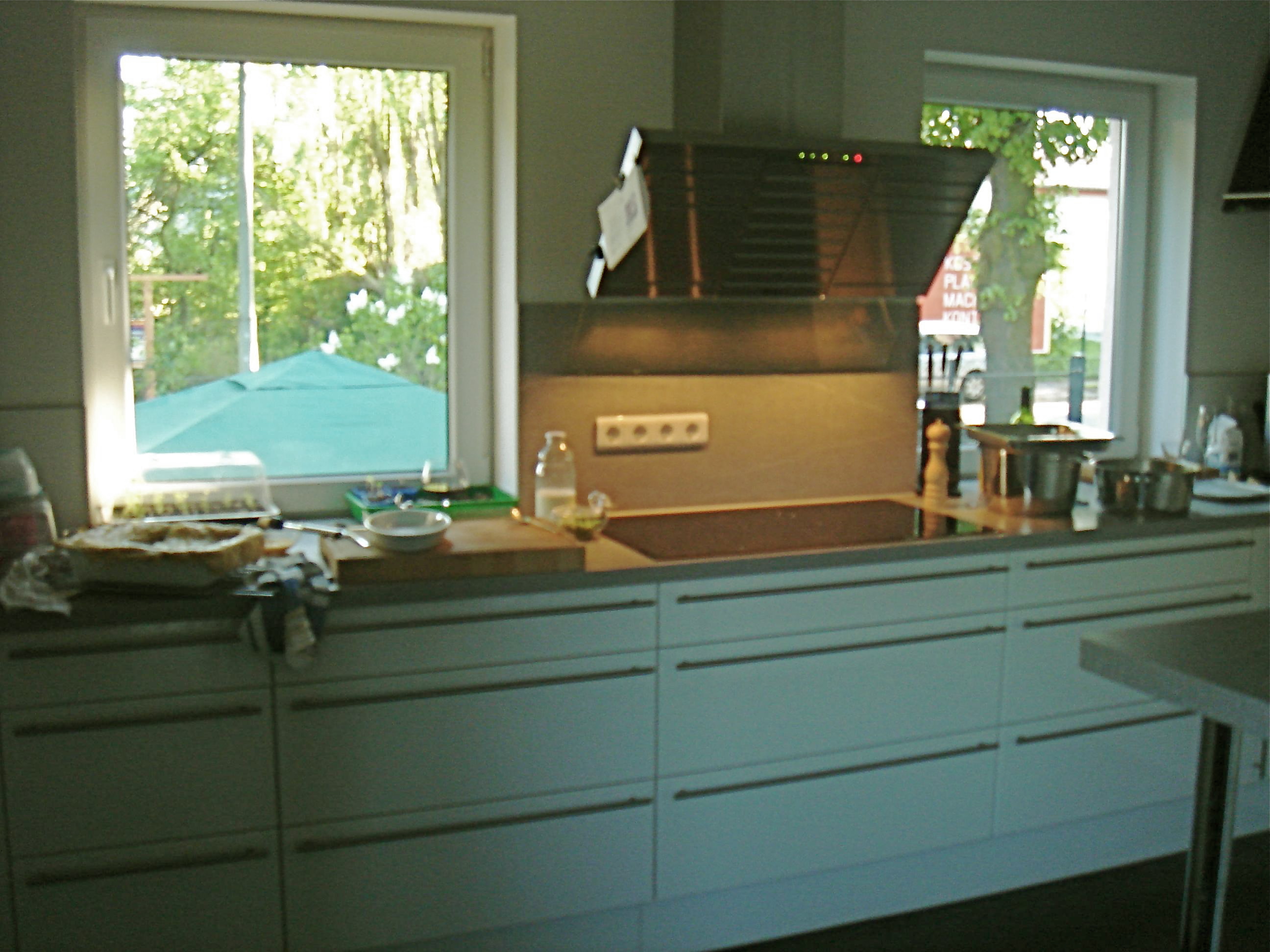 Übringens – der Beiweis, dass in der Vorzeigeküche gearbeitet wird. So sah sie danach aus: unaufgeräumt, aber immer noch genug Platz zum arbeiten frei.