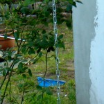 Liebe Freunde finden aber manchmal Gutscheine total doof und so kamen neben den Gutscheinen auch einige neue Bewohner für den Garten. Unter anderem eine rote, einmalblühende und duftfreie Kletterrose mit dem schönen Namen ‚Pauls Scarlet‘. Leider musste der ganze Garten noch umgegraben besser gesagt gesiebt werden und so war nahe am Haus erstmal ein guter Platz. Und damit die Schönheit klettern kann bekam sie auch noch ein Gerüst aus Baumarktketten mit Gewindestangen.