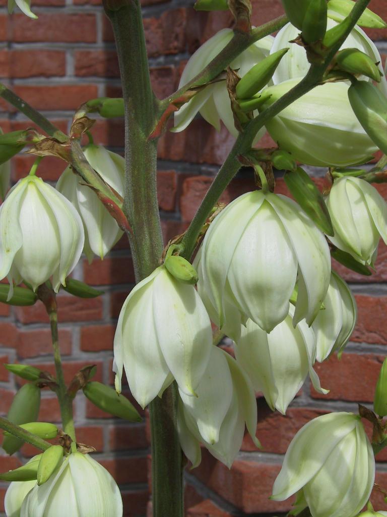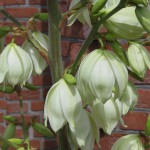 Sehr viel südlicheren Gefilden als Brandenburg zugehörig wirkt die Palmlilie (Yucca filamentosa). Sie ist aus Gärtnersicht zahm wie ein Lämmchen . Zusätzlich bleibt dieses Pflanzenwunder im Winter grün, ist frosthart wie ein Eisbär und blüht mit einem ganzen Stamm voller Lilienblüten von Juli bis August. Sehr schön macht sich das mit Gräsern, Kugellauch und Eselsohr (Stachys lanata) in einer Fläche aus mineralischem Mulch – also Kies, Geröll, Schotter oder Splitt als Bodenbedeckung. Überhaupt sind diese Pflanzen dankbar wenn der Boden eher nährstoffarm und mager ist. Dass sie in vollster Sonne stehen möchten, versteht sich von allein.