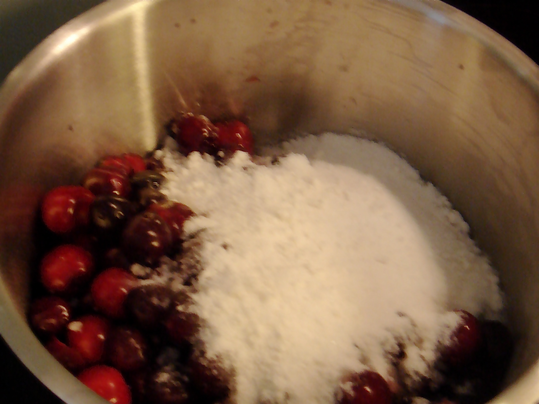Klassische Marmelade schied also aus, also wurden nur die Stiele entfernt, die Kirschen gewaschen und mit Gelierzucker angesetzt.
