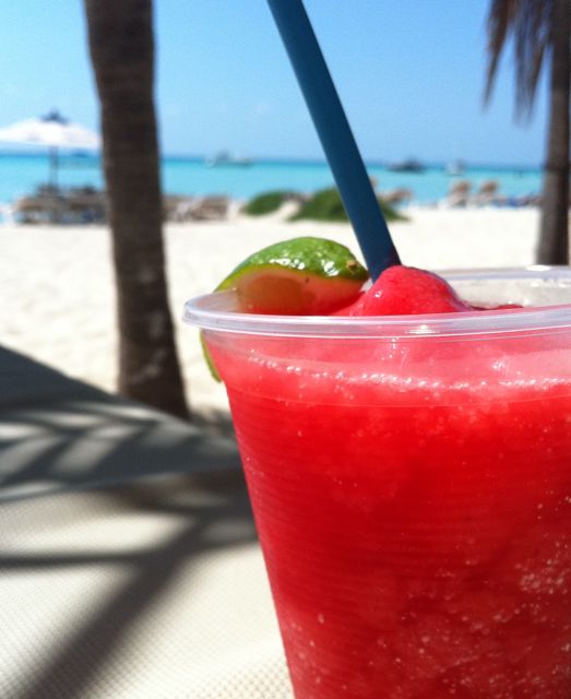 Heute mache ich es mal andersherum. Ich präsentiere einen echten Cocktail – Strawberry Margharita – aber ohne Rezept. Das liegt schlicht daran, dass ich ihn nicht selbst gemacht habe. Ich habe auch nicht das Bild fotographiert. Ich war noch nicht mal dabei als es geschossen wurde, leider, wie ich betonen möchte. Dieses Bild wurde auf der Isla Mujeres vom deernchen aufgenommen, die – den Neid bitte jetzt auspacken – in der Nähe lebt und gerne mal rüberschippert zur Insel. Und sie sendete mir den Cocktail mit Blick zur Aufmunterung an einem regnerischen Tag hier in Deutschland.