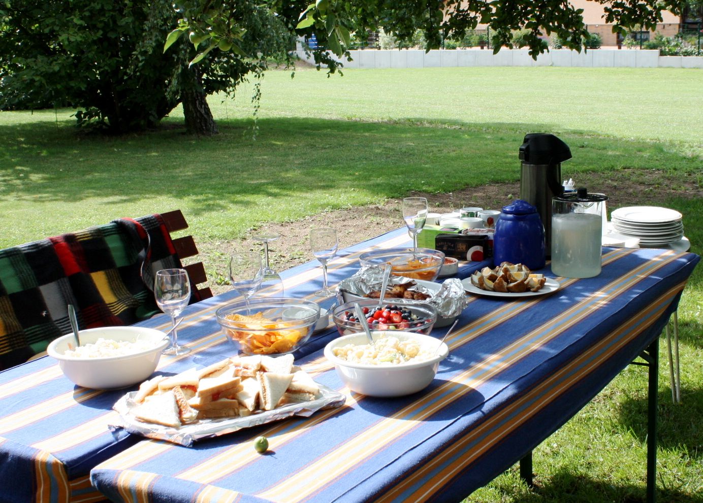 In den USA ist der Nationalfeiertag *der* Tag für Picknicks mit Familie und Freunden. Man trifft sich hauptsächlich in Parks oder an öffentlichen Plätzen, oft wird dort ein Programm geboten und man kann das traditionelle, örtliche Feuerwerk sehen. Gut, damit konnte ich jetzt nicht dienen, unser Picknick-Tisch wurde im abgelegenen Obstgarten aufgebaut aber immerhin, wir hatten Sonne und amerikanisches Essen.