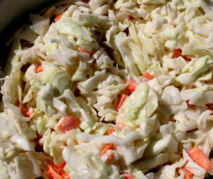 Als da wäre zum Beispiel der amerikanischte Salat überhaupt – der Cole Slaw. Ein ganz einfacher Salat, extrem gut vorzubereiten und unglaublich lecker. Wenn als Beilage gedacht, reichen sechs Personen