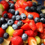 Chicken-Wings waren das einzige, was ich so aus dem Supermarkt geholt habe. Man kann sie richtig gut selbst marinieren, weiß ich, ja. Aber meine Zeit war begrenzt und manchmal muss man einfach wissen, wo man wie seine Abstriche macht Ressourcen nutzt. Und den Fruchtsalat erklär ich jetzt mal nicht. Wichtig sind hierbei nur die Blaubeeren. Viele Blaubeeren.