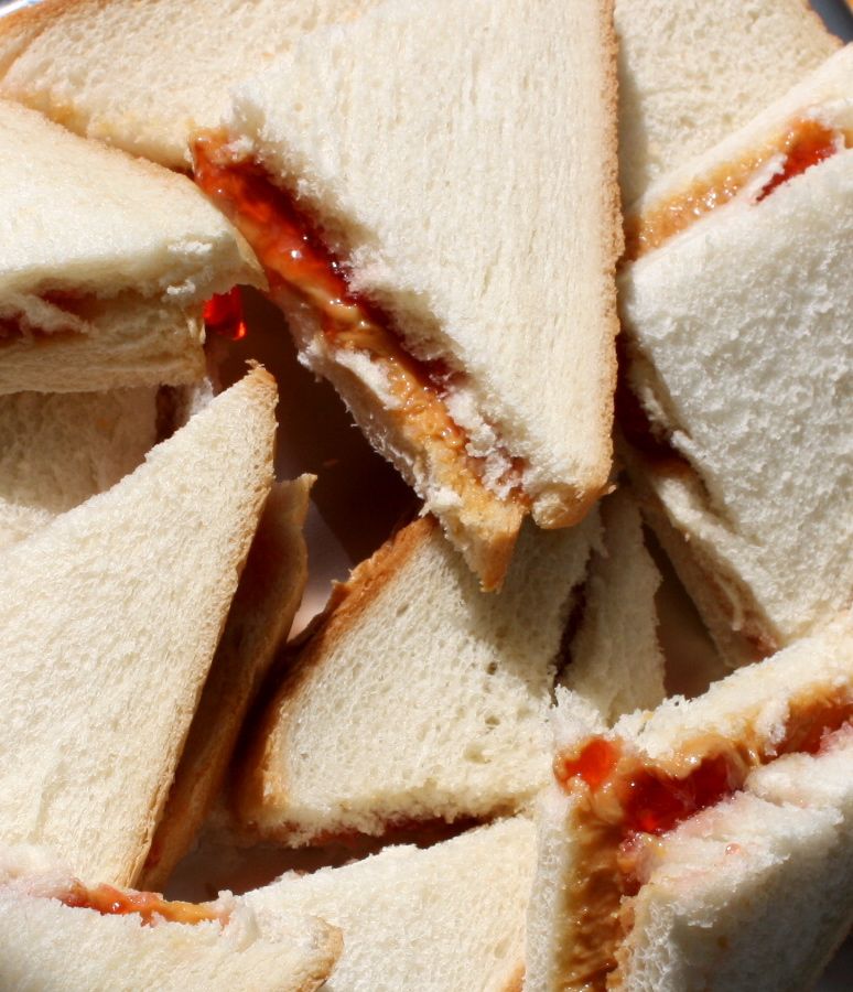 Etwas, was bei absolut keinem amerikanischen Picknick fehlen darf, und was ich persönlich gar nicht mag, sind PBJ – Peanut Butter and Jelly Sandwiches. Grauenhaft süss und klebrig, aber gnade einem die Freiheitsstatue, wenn man sie vergißt. Gemacht sind sie schnell, daher sind sie wohl auch so beliebt.