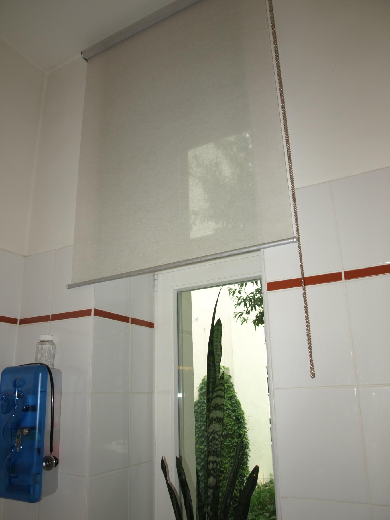 Ein Problem ist bis heute geblieben: das Bad. Zwei schöne große Fenster zum Hof machen es ordentlich hell, aber auch gut einsehbar. Wir haben ein paar halb-durchsichtige Rollos befestigt, die schon viel helfen, aber man hat immer noch das Gefühl, bei eingeschaltetem Deckenlicht den Nachbarn von über den Hof eine Peep-Show zu bieten. Deshalb wird schamhaft im Gästebad geduscht. Wir arbeiten noch an einer anderen Lösung, aber derzeit können wir uns noch nicht durchringen. Ob Sichtschutzfenster sein müssen, oder ob doch eine Folie reicht und wirft die nicht sicher Blasen? Oder doch blickdichte Jalousien, Rollos, Vorhänge… irgendwie können wir uns nicht durchringen. Für zündende Ideen bin ich dankbar.
