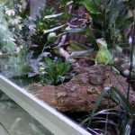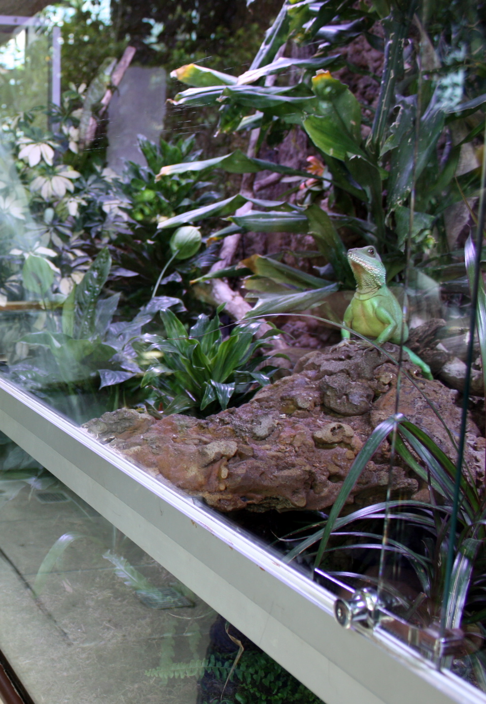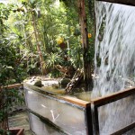 Nach dem Motto, wenn der Sommer nicht zu uns kommt, dann kommen wir eben zum Sommer, waren wir diese Woche da. Um es vorweg zu nehmen – der Weg lohnt sich. Durch die Halle windet sich ein verschlungener Pfad, der einen wirklich in einem tropischen Regenwald wähnen läßt, wenn man nicht gerade durch das verglaste Dach hochschaut. Überall raschelt und fiept es, der Weg ist gesäumt mit Terrarien und Volieren.
