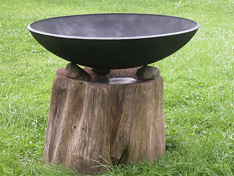 Wie man an dem einen oder anderen Post von mir vielleicht schon gemerkt hat, ich mag es sehr urig. Wirklich moderne, durchdesignte Stücke finden sich bei mir eher nicht. Auch und schon gar nicht im Garten. Ich da mag ich es sehr urig, daher gefällt mir auch diese relativ einfache Schale von Ehnert sehr gut, die auf einem einem mehr oder minder sehr roh bearbeiteten Holzblock steht. Es hat etwas sehr Bodenständiges und ich finde die Idee klasse, eine Feuerschale einfach auf einen Baumstumpf – künstlich angelegt oder von der letzten Fällaktion stehen geblieben – zu stellen.
