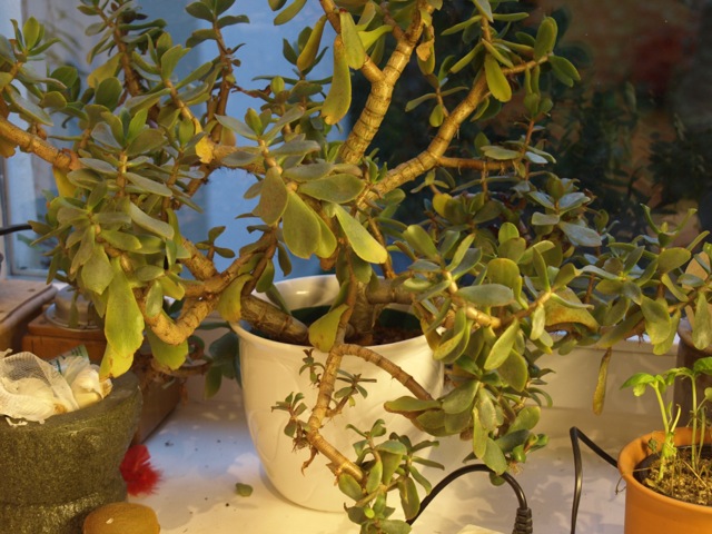 Und dennoch gibt es eine kleine tapfere Pflanze, eine Orchidee, die beschlossen hat, dieses Gesetz ausser Kraft zu setzen. Ich habe sie blühend letzten Herbst zu meinem Geburtstag bekommen. Irgendwann warf sie ihre Blüten ab und die Stengel ragten kläglich in die Luft. Ehrlich gesagt bin ich einfach nicht dazu gekommen, sie wegzuwerfen. Woraufhin sie beschlossen hat, doch noch mal wieder anzufangen. Und so sieht sie im Moment aus.
