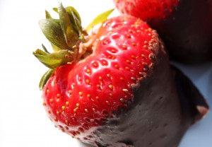 Also, man putzt die Erdbeeren sehr sorgfältig, läßt aber das Grüne dran. Dann badet man die Beeren einen Tag lang in gutem Wodka. Nach dem Rausholen vorsichtig trockentupfen und auf Küchenkrepp trocknen lassen. In der Zwischenzeit Schokolade vorsichtig schmelzen, ich habe eine relativ hochwertige 70%ige genommen, aber das ist Geschmackssache. Die Erdbeeren dann entweder eintauchen oder vorsichtig übergießen und wieder trocknen lassen. Das Servieren kommt auf einem weißen Teller besonders gut, hab ich festgestellt.