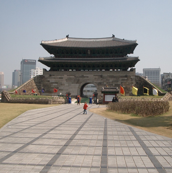 Das Namdaemun war, ist und wird wieder einer der Nationalen Schätze Südkoreas sein. In der ursprünglichen Gestalt 1395 unter Kaiser Tejo erbaut, war es historisch eines der Tore der Stadt Seoul und bis zum 10. Februar 2008 die älteste Holzkonstruktion der Stadt. An diesem Abend war ein 69-jähriger Südkoreaner der Meinung, er müsse seiner Wut über einen mutmaßlichen Betrug damit Luft machen, dass der das Tor anzündete. Wer die Winter in Korea kennt, weiss: sie sind knochentrocken. Das hölzerne Tor brannte wie Zunder.
