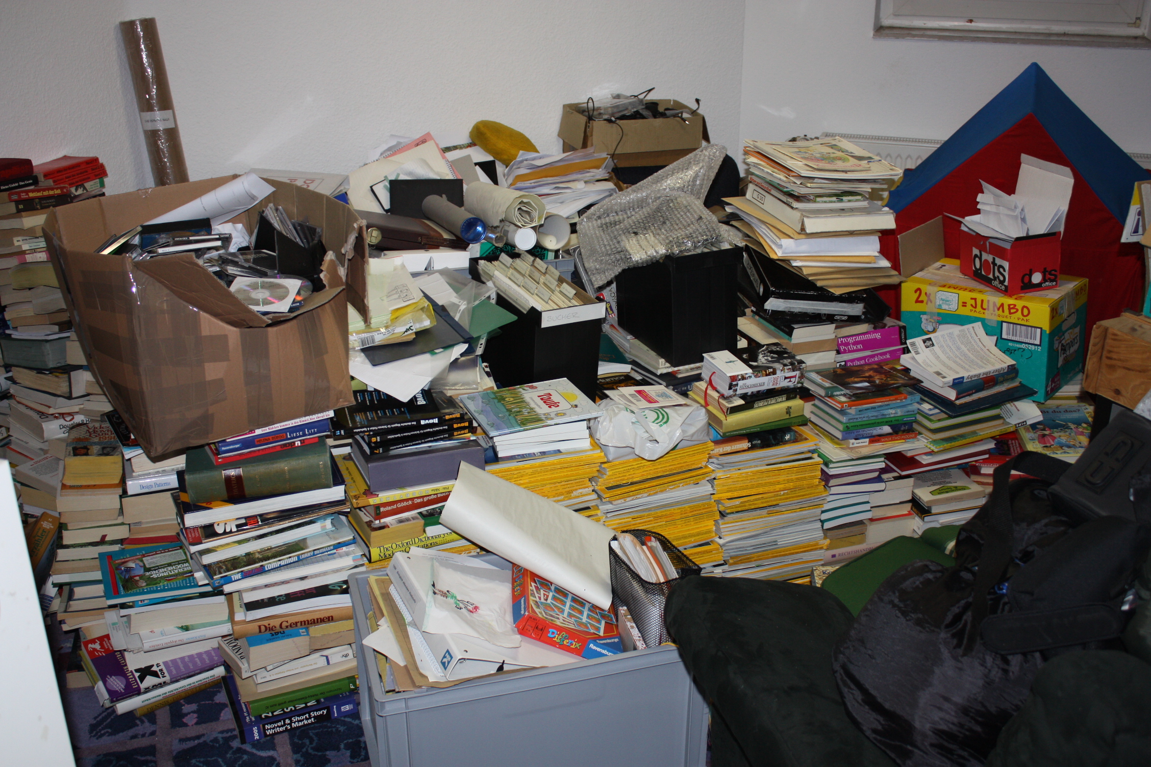Dazu kommen noch Rechner-Zeugs und Aktenordner, die eine weitere Raumhälfte füllen. Gut, einiges von dem Zeugs werden wir aussortieren, aber spartanisch wird das neue Arbeitszimmer bestimmt nicht.