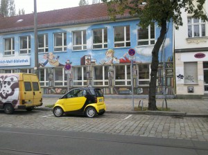 Es war kalt heute, der Himmel grau und wir zu Fuß unterwegs. Gut, dass wenigstens die Wände ein bisschen Farbe hatten.