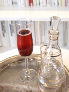 Wobei ich beim Nachschlagen des Namens wieder was gelernt habe. Ausgegangen bin ich davon, das ein Kir eben schlichter Sekt mit Johannisbeerlikör ist, und sich das Getränk nur dann mit dem Zusatz „Royal“ schmücken darf, wenn es mit Champagner zubereitet wird. Anscheinend war es aber so, dass die Mischung ursprünglich in der Region um Dijon als Cassis-Blanc bekannt war, und aus Weißwein mit Likör bestand. Nach einem Bürgermeister von Dijon namens Felix Kir neu benamst, wurde das Getränk auch überregional bekannt und beliebt. Und „Royal“ darf es sich wohl immer dann nennen, wenn es mit Champagner, Cremant oder Sekt aufgegossen wird. So, der Bildung genug getan, zum Wohl!