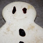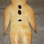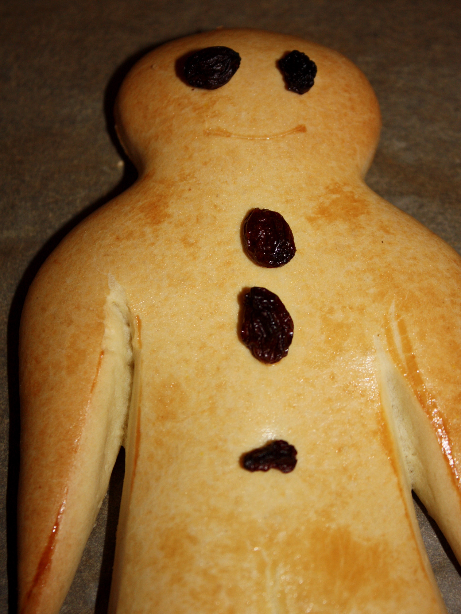 Immer ist ein Männchen aus Hefeteig gemeint, der mit Rosinen gespickt ist und je nach Gegend entweder einen Bischofs-Stab oder eine Keramik-Pfeife trägt.