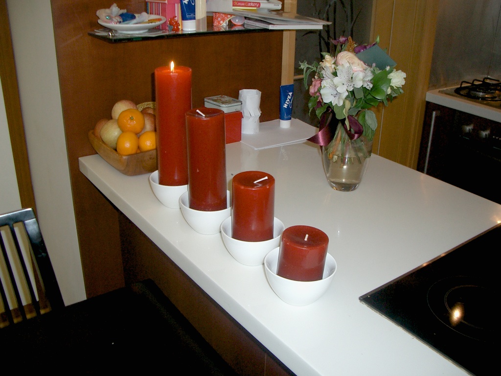 Unglaublich massiv, rot und groß. Er steht jetzt auf einem großen Esstisch für acht bis zehn Personen und sieht kein bißchen klein oder verloren aus. Wirklich, wirklich schön.