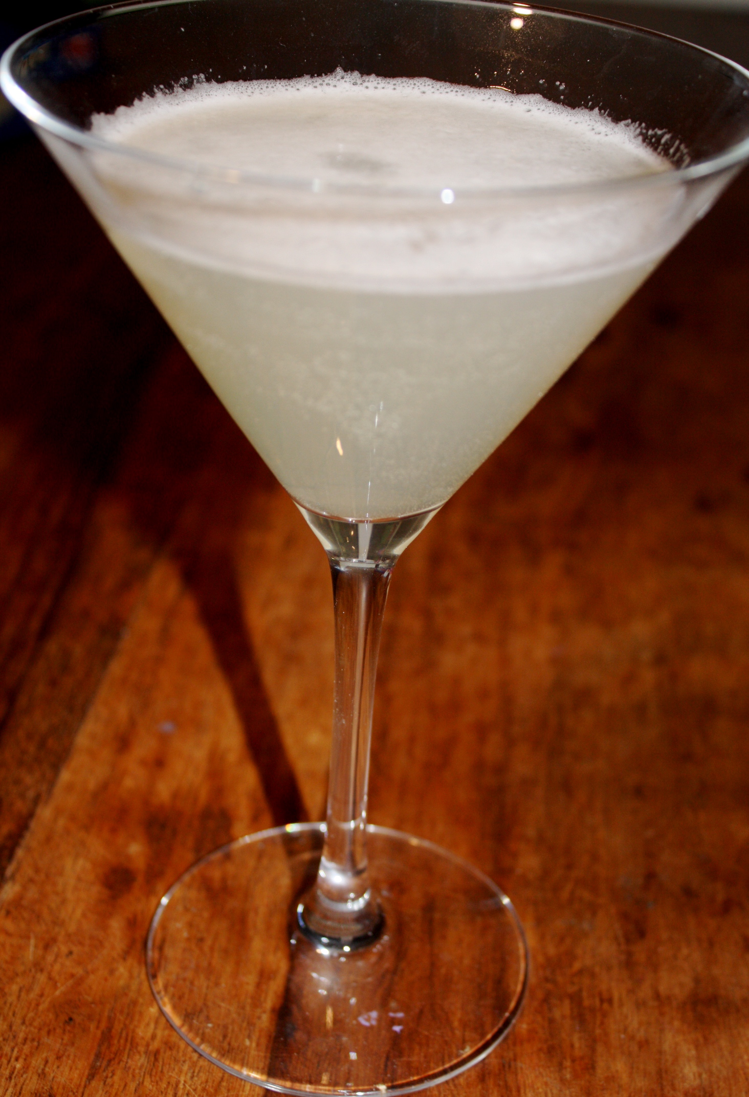 Ein Teil Zitronensaft, ein Teil Zuckersirup, zwei Teile Wodka werden lächelnd über Eis geschüttelt. Dann in ein Martini-Glas abgegossen und mit Zitronenlimonade aufgefüllt. Sehr lecker, säuerlich und so gar nicht süss. So muß ein Cocktail schmecken. Gleich dreimal hintereinander.
