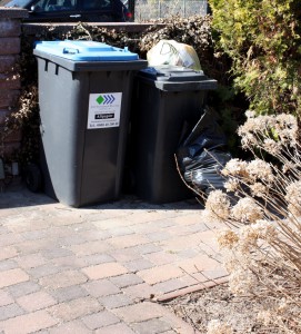 Das zweite Projekt wird mein Mülltonnenverschlag sein. Die Zeiten in denen man genau eine Mülltonne hatte sind ja nun vorbei. In Brandenburg haben wir Gelbe Säcke, eine Papiertonne und eine Restmülltonne. Und das steht bei uns vorne an der Mauer, im Sommer gnädig verdeckt von meiner Schneeballhortensie. Aber leider nur vom Haus aus, von der Strasse aus sieht man die Dinger in voller Pracht. Und im Winter dann von überall aus. Und da ich einen Mann mein Eigen nenne, der so ein wenig mit Holz umgehen kann, habe ich beschlossen, ich will unter seiner Anleitung eine Mülltonnenwohnung bauen. Kann ja nicht so schwer sein. Und weil das Kind einen Namen haben muss, nennen wir das Holz-Workshop, Frau Jugel macht mit und baut Regale. Auch das, so habe ich gehört, soll mein Mann können.