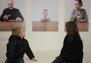 Das Spannende an den Bildern ist einmal sicherlich die Gesichtsausdrücke der einzelnen Menschen – von herzhaft lachend bis fast schon traurig sinnierend ist alles dabei. Was ich persönlich aber noch interessanter finde: Was andere Leute als Genußmittel definieren. Denn es gab keine Vorgaben, jeder durfte sich das aussuchen, was er wollte. Und so kommen neben Austern (ok, kann man drauf kommen) auch ein Apfel oder Pfannkuchen vor.