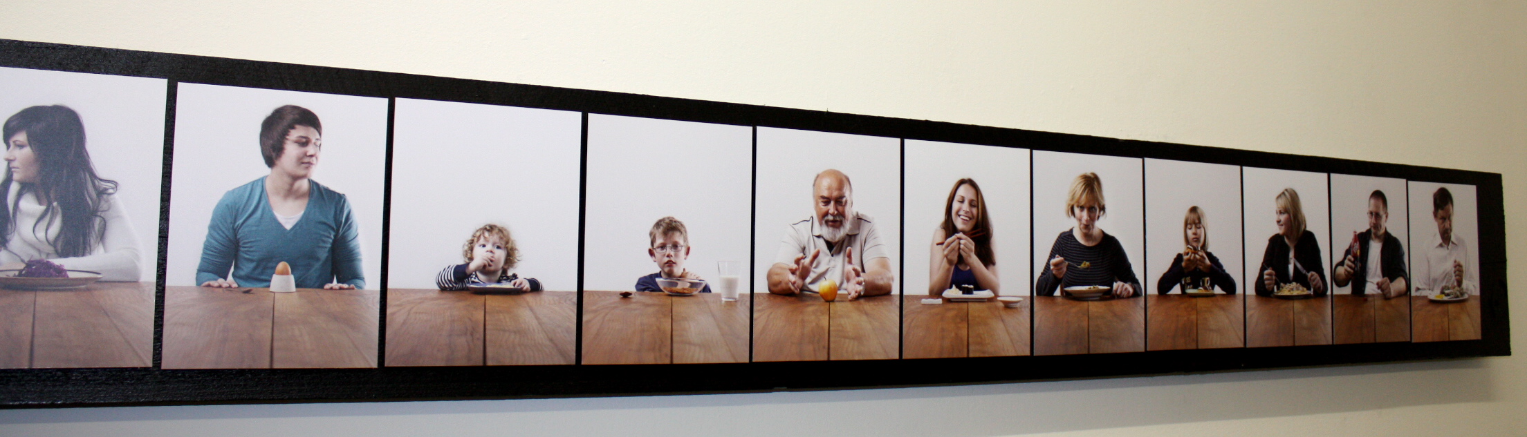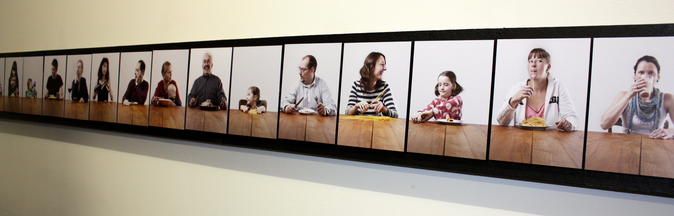 Die Idee zur Austellung entstand aus einem Fotokurs, den Sandra mit genau dem Ziel belegte. Es sollte ein Thema sein, das sich ohne viel Zeitaufwand realisieren ließ. Also ohne viel zeitraubendes Herumgereise. So lockte sie über Monate hinweg immer wieder Freunde und Bekannte in ihr Wohnzimmer, in dem die Fotoausrüstung zeitweise gar nicht mehr abgebaut wurde. Jeder durfte sich mitbringen, was er wollte und wurde damit abgelichtet – an manchen Sonntagen wurden ganze Familien, einer nach dem anderen, vor die Kamera geholt.