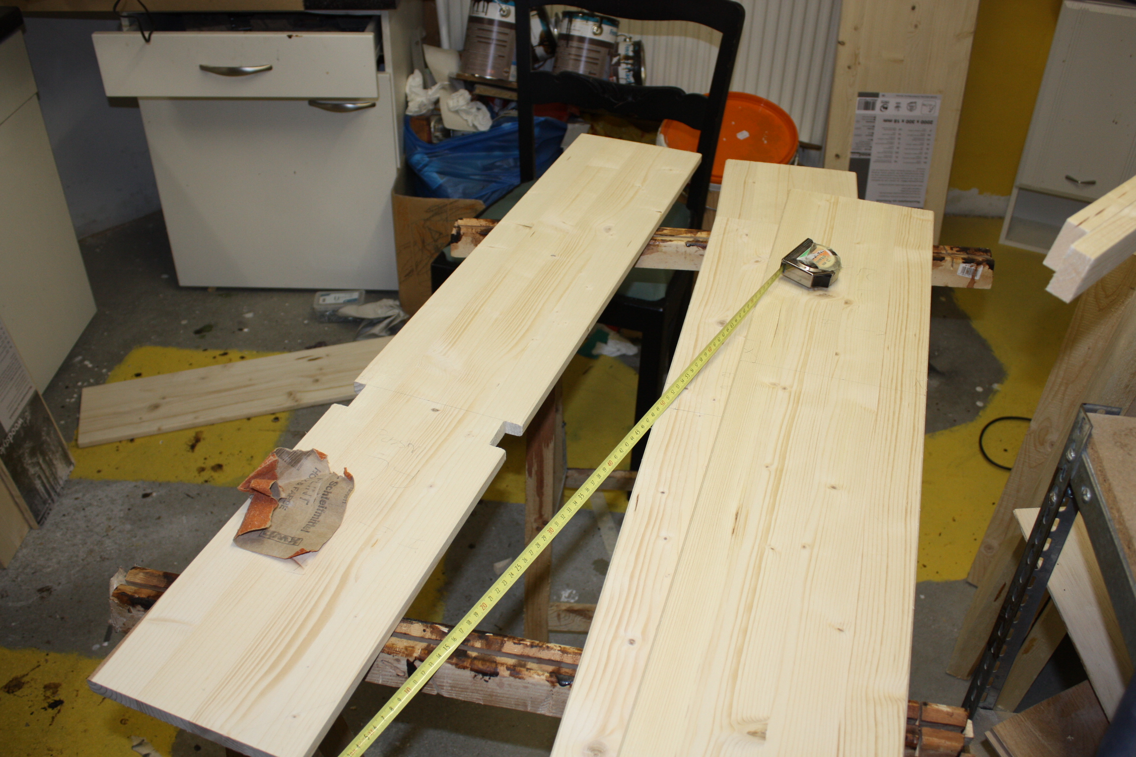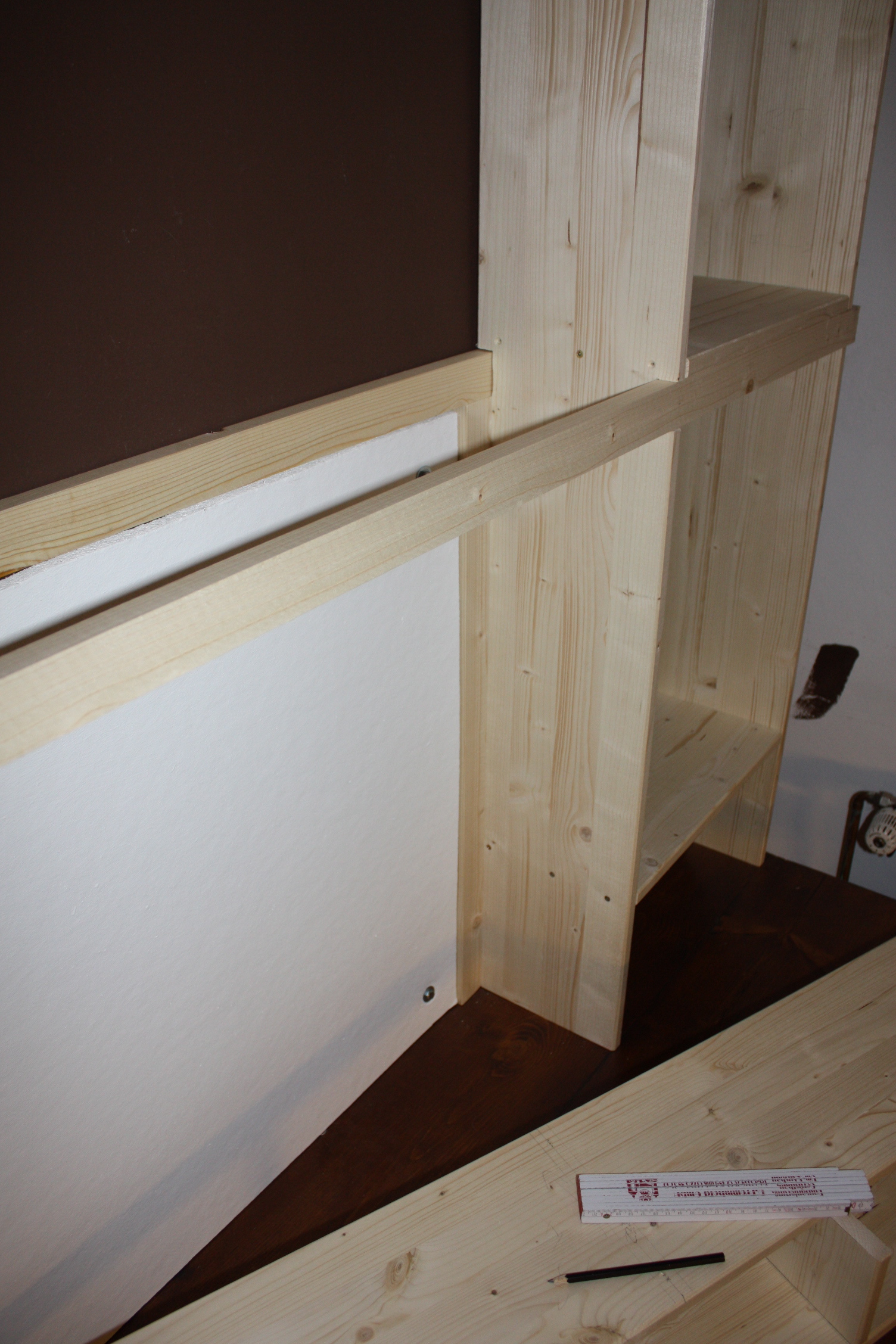Der einzige Trick dabei ist, und das kann man nicht genug betonen, sorgfältig zu messen und sorgfältig zu sägen. Die Nachtdienstregale konnten im Schlafmangeldelirium zusammengehämmert werden, das geht hier nicht.