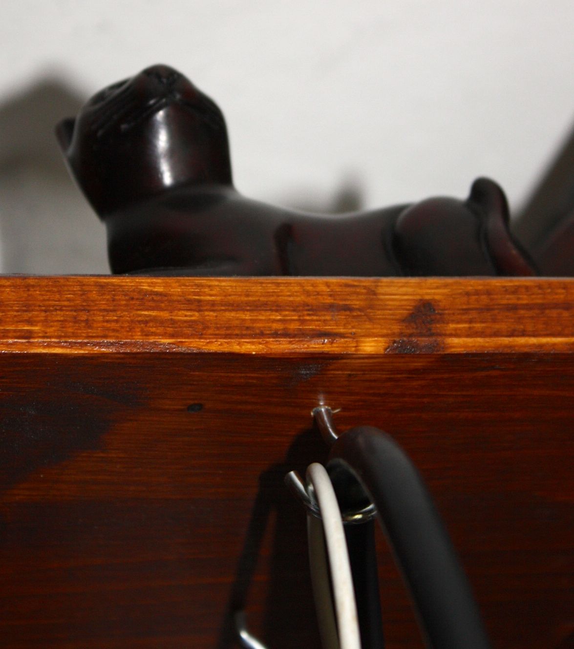 Die Kabelbewachkatze. Sie thront über dem nach Frau Jugel benannten Kabelaufbewahrplatz und wacht darüber, dass auch wirklich jedes Kabel wieder zurück auf ihren Platz gehängt wird. Und ich schwöre, ich habe sie schon warnend fauchen gehört.