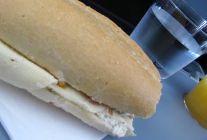 Anders sieht es beim Essen aus. Ein Flug von Berlin nach Alicante dauert um die 2:50 und man bekommt tatsächlich noch was zu essen – zumindest bei der Airline, die als einzige von Berlin nach Alicante durchfliegt. Und ich nehme mittlerweile meine eigenen Bütterchen mit – im Juni hatte Dreiviertel unserer Familie am Abend nach dem Genuß des sogenannten Sandwiches Magenprobleme – das restliche Viertel hat nichts gegessen, da es eingeschlafen war. Und dieses Mal war es schlicht nicht genießbar. So gar nicht. Weder auf dem Hin- noch auf dem Rückflug. Airline Meals hätte seine helle Freude daran.