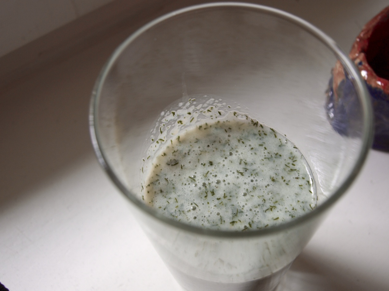 Ich mag vor allem diesen schönen, frischen Geruch nach Gurke und Dill. Grundsätzlich kann man auch tiefgekühlten Dill nehmen, aber davon muss man für das gleiche Aroma mehr nehmen, und dann wird das Getränk leicht eintopfartig.