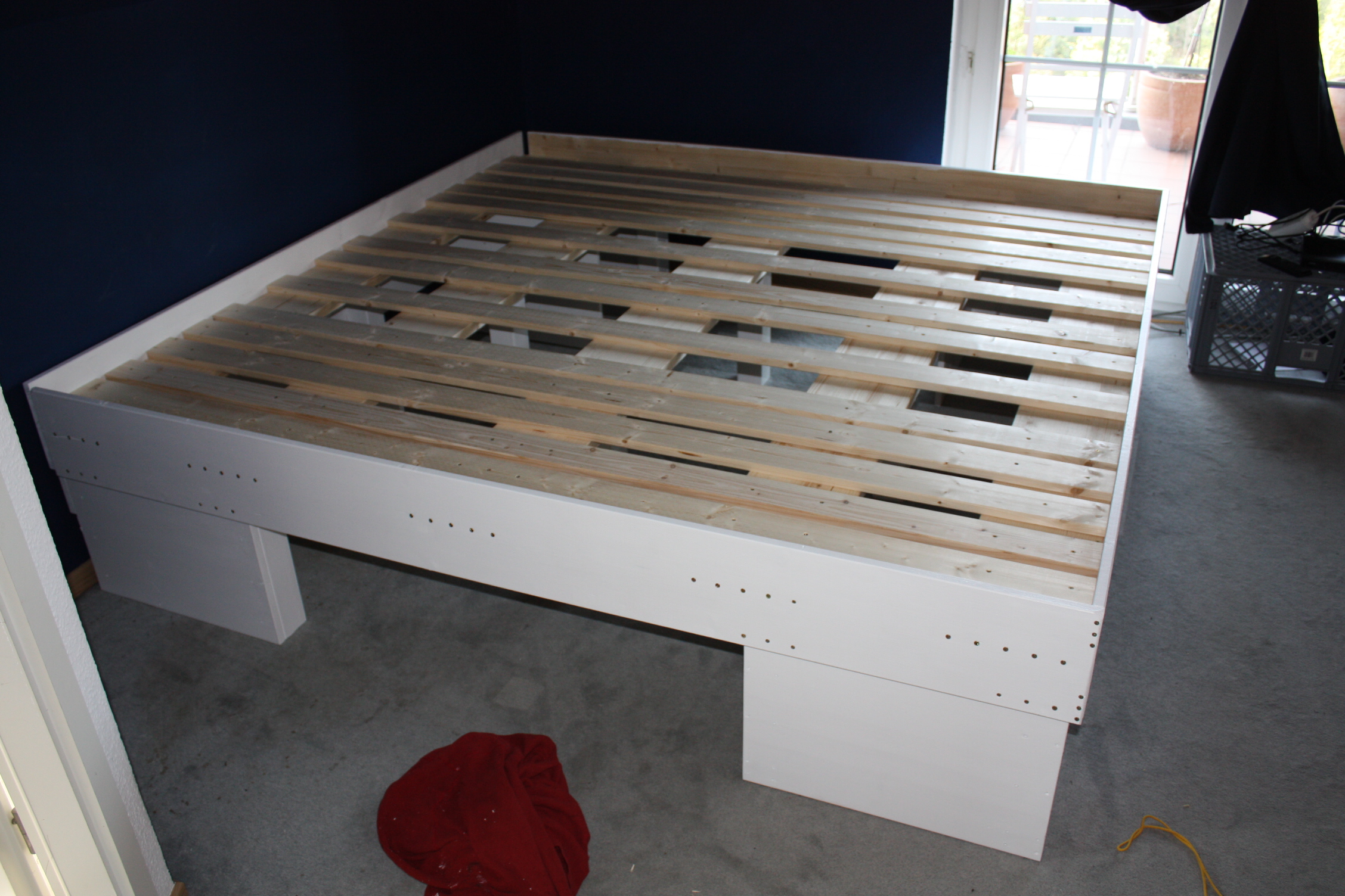 Ja. Wenn man genau auf das zweite Bild schaut, sieht man besonders in der Ecke am rechten Kopfende eine Spalte. Das ist allerdings ein feature und kein bug: Eine noch nicht ausgestandene Diskussion im Hause Stevenson ist der Einsatz von Wärmeunterbetten, die zu deutlichen Energieersparnissen im Winter führen können. Die Lücken würden es erlauben, Kabel aus dem Bettkasten zur Seite herauszuführen, ohne dass sie über die Kanten laufen müssen. Falls wir uns mal einigen können.