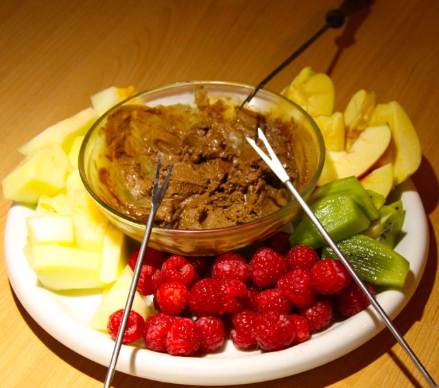 Hier ein echtes Highlight und als Belohnung gerne genommen. Die Schokolade langsam im Wasserbad flüssig werden lassen. Einzele Obststücke auf eine Gabel spießen und durch die Schokolade ziehen. Auf Backpapier trockenen lassen. Wahlweise macht man sich sein eigenes Schokofondue zum Nachtisch, auch wenn das süsse Zeug dann relativ schnell zähflüssig wird. Wie auch immer, die Aktion verleiht einem mindestens eine Stunde lang den Titel „Beste Mutter von Welt“
