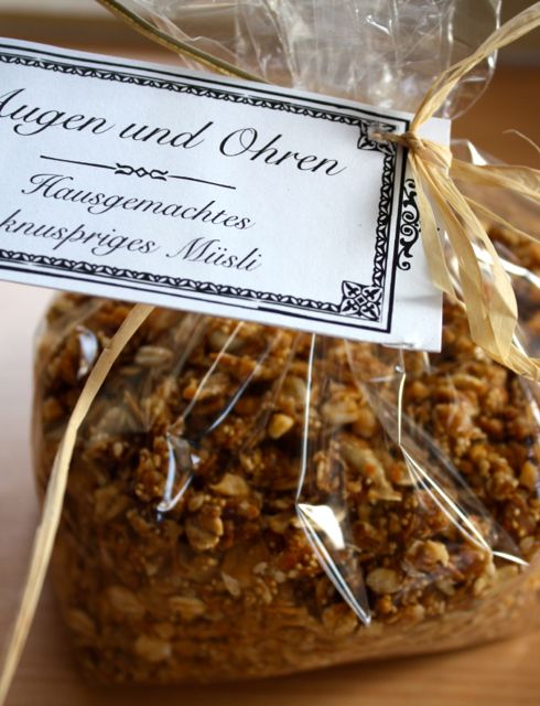 Ein selbstgemachtes, knuspriges Müsli, das ich von der Landfrau abgekupfert habe und das meine Kinder für momentan das beste Frühstück unter der Sonne halten. Dazu eine Erdbeer-Limetten-Marmelade aus Juli-Erdbeeren, die so richtig satt im Geschmack waren. Das Rezept ist denkbar einfach, auf 1kg Erdbeeren gibt man 500gr Gelierzucker 1:2 und den Saft von zwei Limetten. Ganz ursprünglich war noch eine Brombeermarmelade im Korb, die allerdings in die Hände meiner Tochter gefallen ist und die sie total lecker fand. Und das Kind gar nicht verstanden hat, warum ich mich um alles in der Welt so aufrege, dass das Glas jetzt halb leer ist. Dann hätte ich es eben nicht ganz so prominent da hin stellen sollen. Ihren kulanten Vorschlag, ich könnte die Marmelade doch einfach in ein kleineres Glas umfüllen, würde eh keiner merken, habe ich dann nach kurzem Nachdenken abgelehnt.