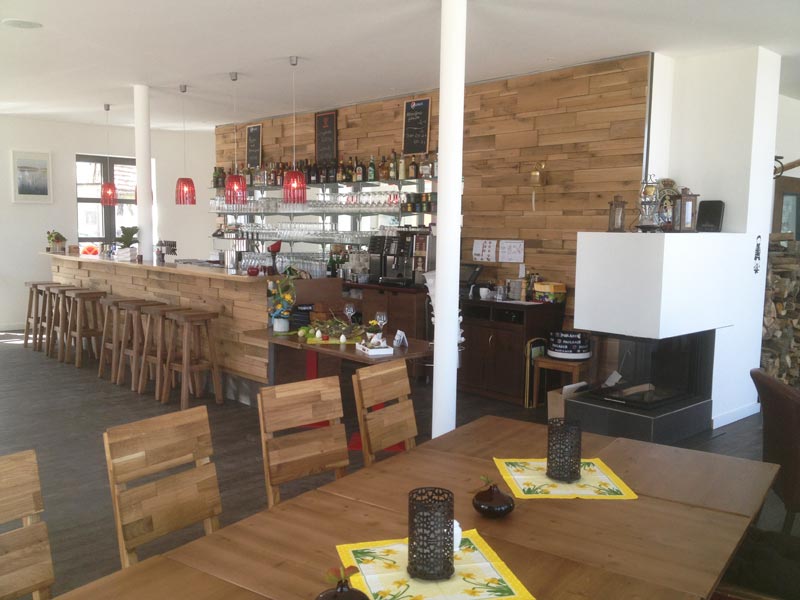 Die Einrichtung würde ich unter gemütlich modern beschreiben, sehr viel Holz und sehr viel Platz mit Blick aufs Wasser. Man kommt rein und fühlt sich einfach wohl. Das war schon mal mehr, als wir nach unseren Irrungen durch Wolgast erwartet hatten. Die Karte ist ausgewogen, hat für jeden etwas, aber sie ist nicht unnötig lang – ich finde zu umfangreiche Speisekarten ja immer suspekt.