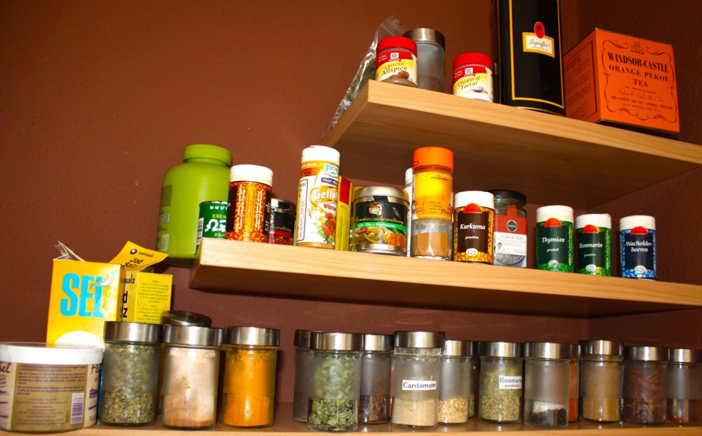 Das Gewürzregal, ja, gleich neben dem Herd, der Herr Koch wird den Kopf schütteln, aber es hat eben nicht jeder zwei Küchen, um höchstmögliche Aromatik zu wahren:-) Und ich mag es gerne griffbereit.