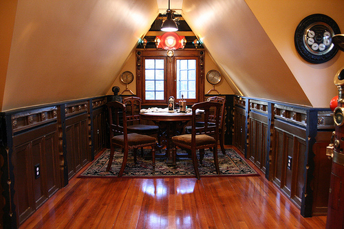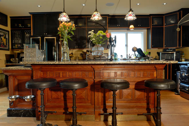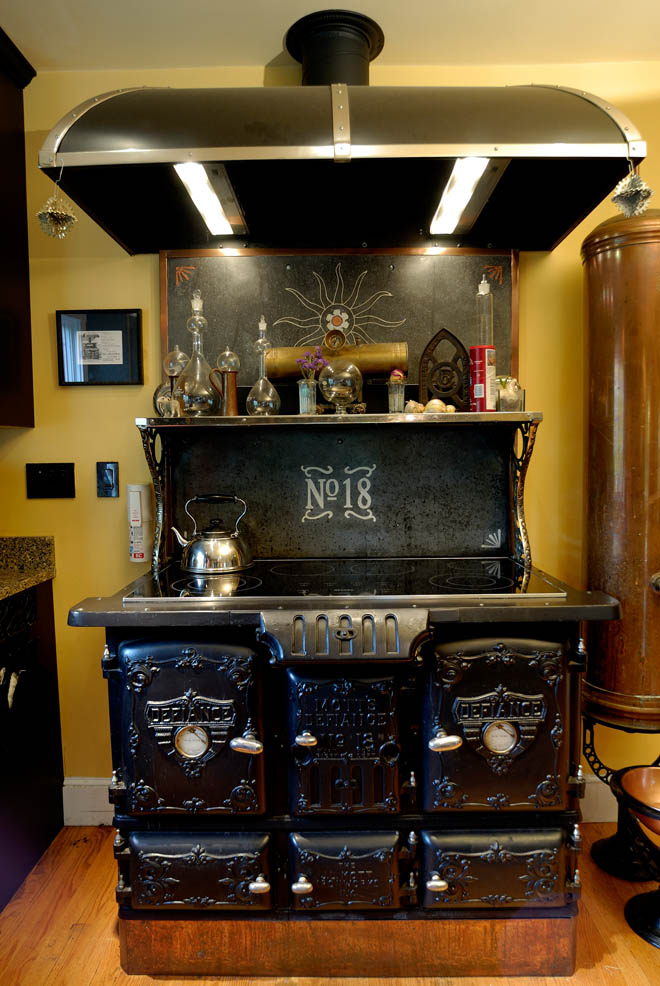 Zur Erklärung, Steampunk ist eine hauptsächlich in angelsächischen Ländern bekannte, noch recht junge Stilrichtung, die moderne und zukunftsorientierte Funktionen mit den Mitteln und Materialen des viktorianischen Zeitalters verbindet. Mittlerweile ist eine ganze Subkultur entstanden, die meinen meinen ganz persönlichen Helden in Bruce Rosenbaum hat. Er hat sein Haus aus dem Jahre 1901 in genau diesem Sinne ausgebaut und das in einer absolut unglaublichen Art und Weise.