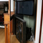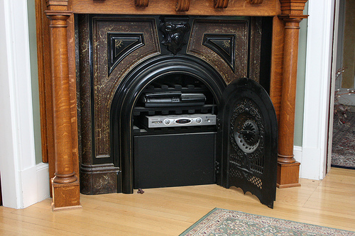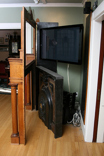Wie man moderne, technische Geräte in ein Altes einbindet, ohne das es wie gewollt und nicht gekonnt aussieht, verdeutlicht der Fernseher und der ganze Technik-Schnickschnack drumrum.