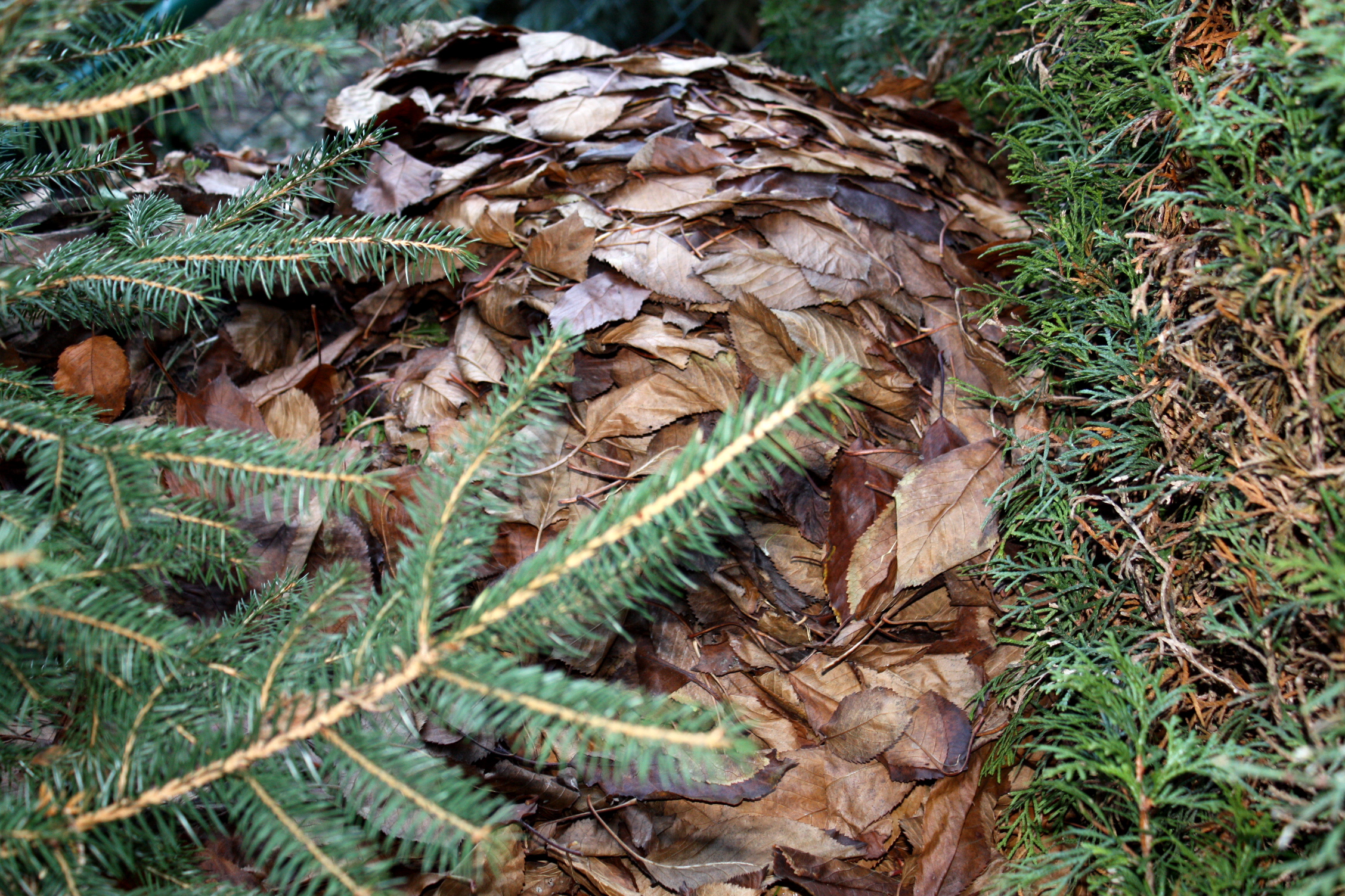Man ist da sehr zwiegespalten. Einerseits weiß man, Laub ist wichtig für Igel, Vögel, Insekten und anderes Getier, damit sie gut über den Winter kommen. Andererseits sieht es nicht nur grottig aus, verrottentes Laug zersetzt auch den Rasen. Daher mache ich einen Kompromiß: In den Beeten lasse ich das Laub liegen – das fällt bei meinem Rindenmulch eh nicht so sehr auf. Auf dem Rasen und den Wegen wird zusammengeharkt und in einer nichteinsehbaren Ecke des Gartens zusammen mit Reisig zu einem Haufen gestapelt. Mein schon beschriebenes Igelhotel. Damit ist das Laub ausser Sichtweite und ich tue schon im Herbst was gegen die kommenden Generationen von Schnecken. Das nennt man Weitsicht.